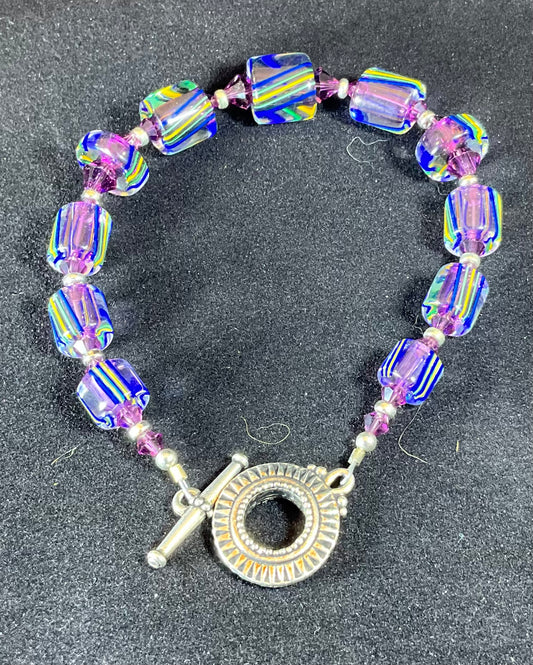 OOAK woven bracelet carnival colors sterling clasp aqua, blue, purple yellow red, etc