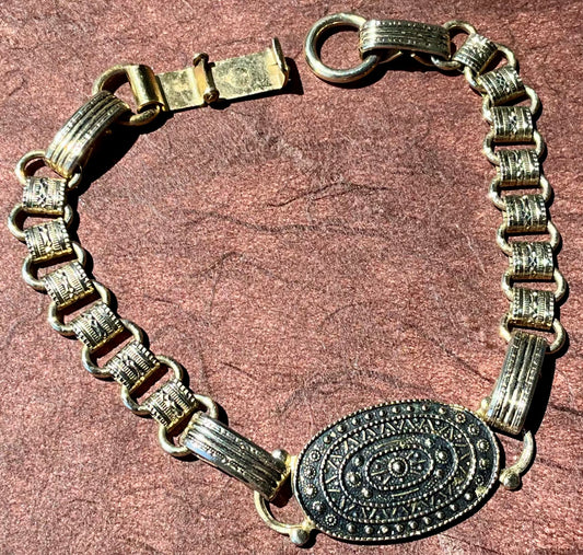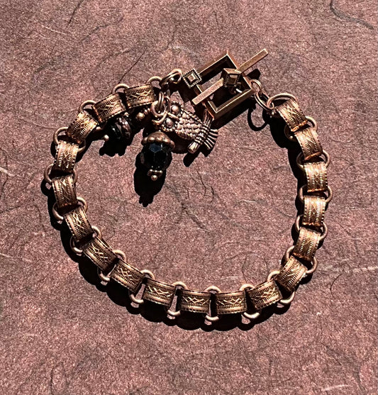 old bronze weatherstripping & copper cuff lined with teal rcycled leather