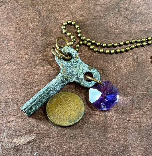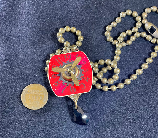 recycled necklace part and antique clock gear necklace in blue and crystals