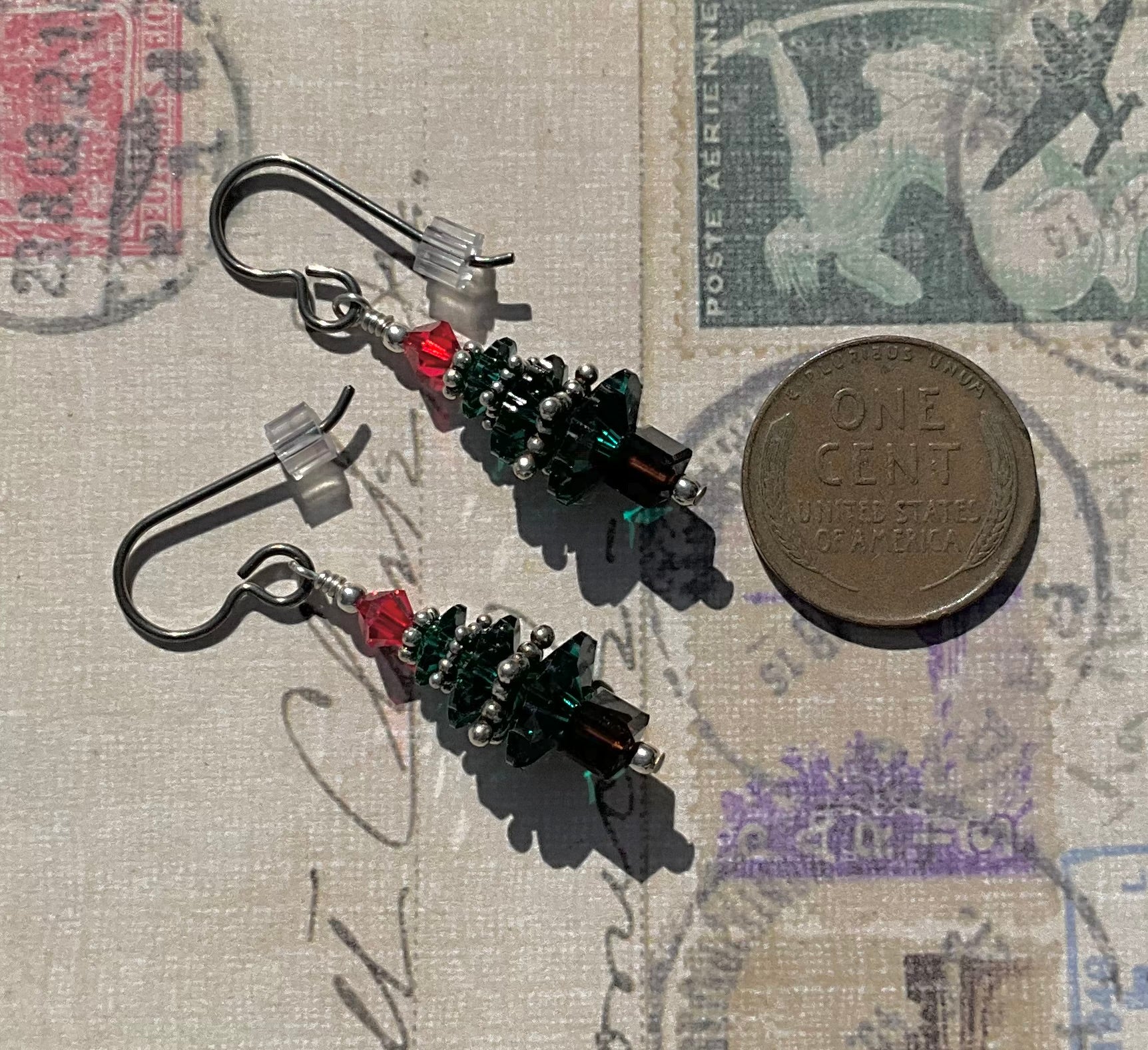the pictures don't do these earrings justice! Layers of vintage and discontinued leaded crystals and sterling silver make up the cutest decorated Christmas tree earrings