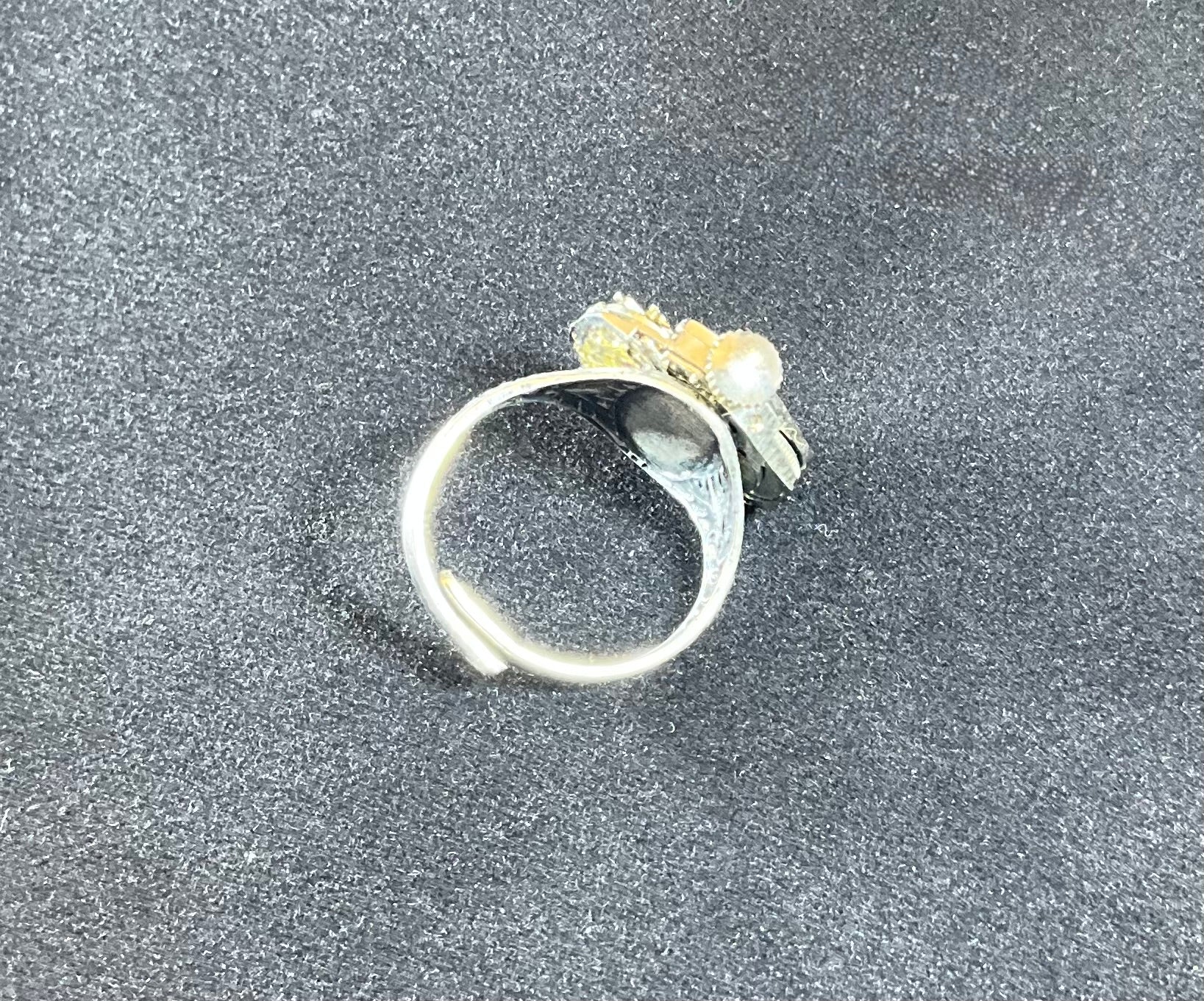 Add a touch of vintage charm to your style with this gorgeous ring featuring etched patterns. The adjustable base allows for a perfect fit 7-10. Make a statement with this unique piece. Time is on your side (literally)!